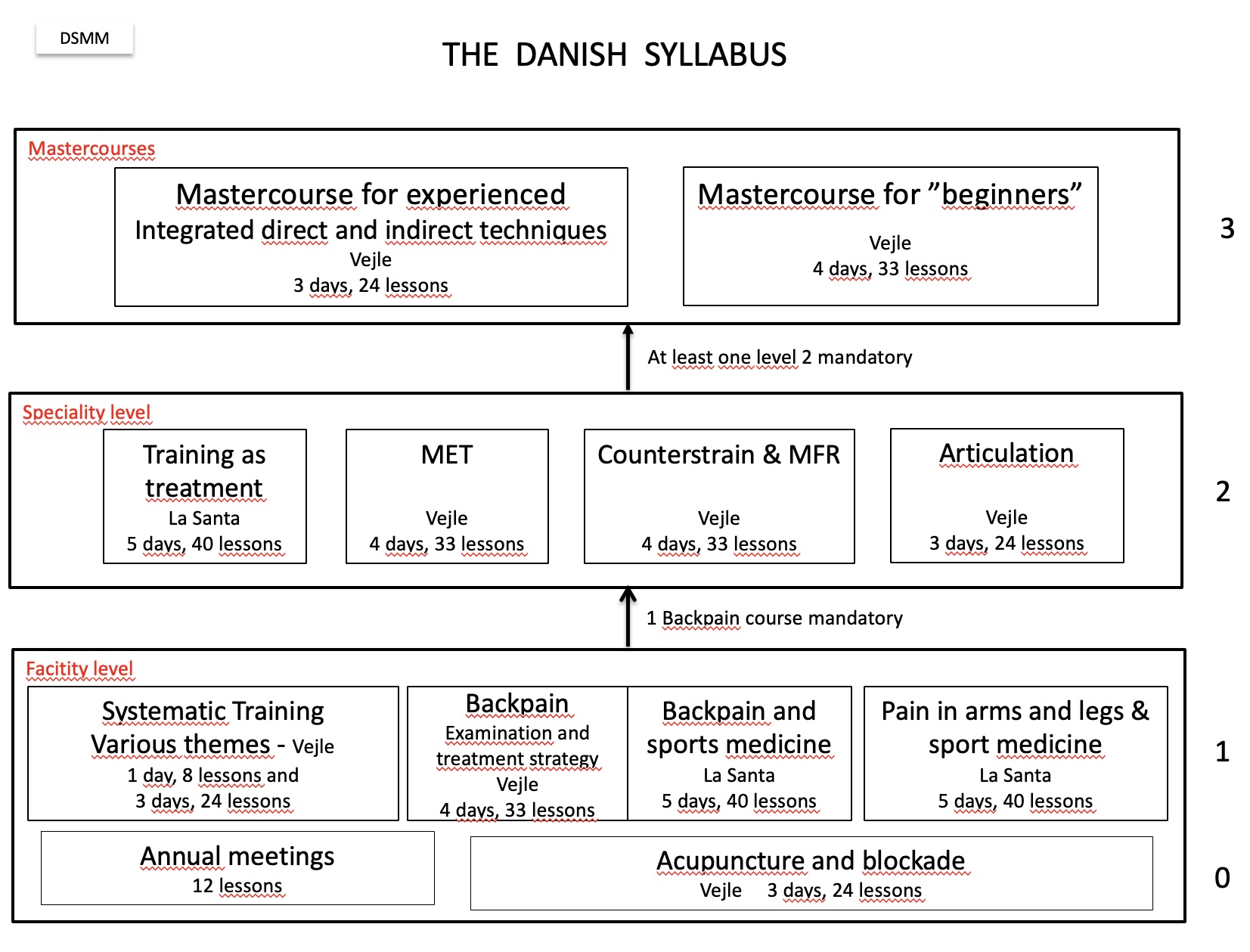 Det er kun læger, fysioterapeuter, kiropraktorer og uddannede osteopater, som kan tilmelde sig DSMM kurser. Tandlæger skal have gennemgået et Grundkursus for at tilmelde sig andre kurser.